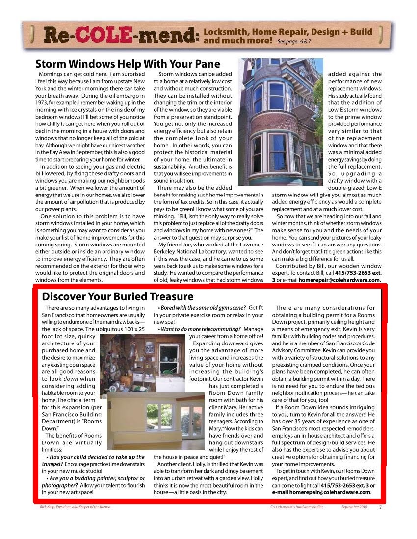If you're looking for a good emergency locksmith, appliance repairperson or irrigation system installer, local hardware-and-more retailers Cole Hardware is a great resource. Their Re-COLE-mend Repair Referral Service can point you in the right direction.